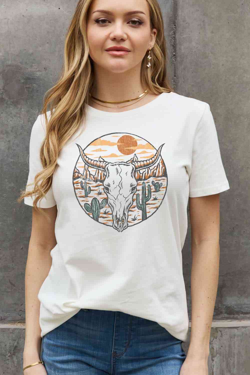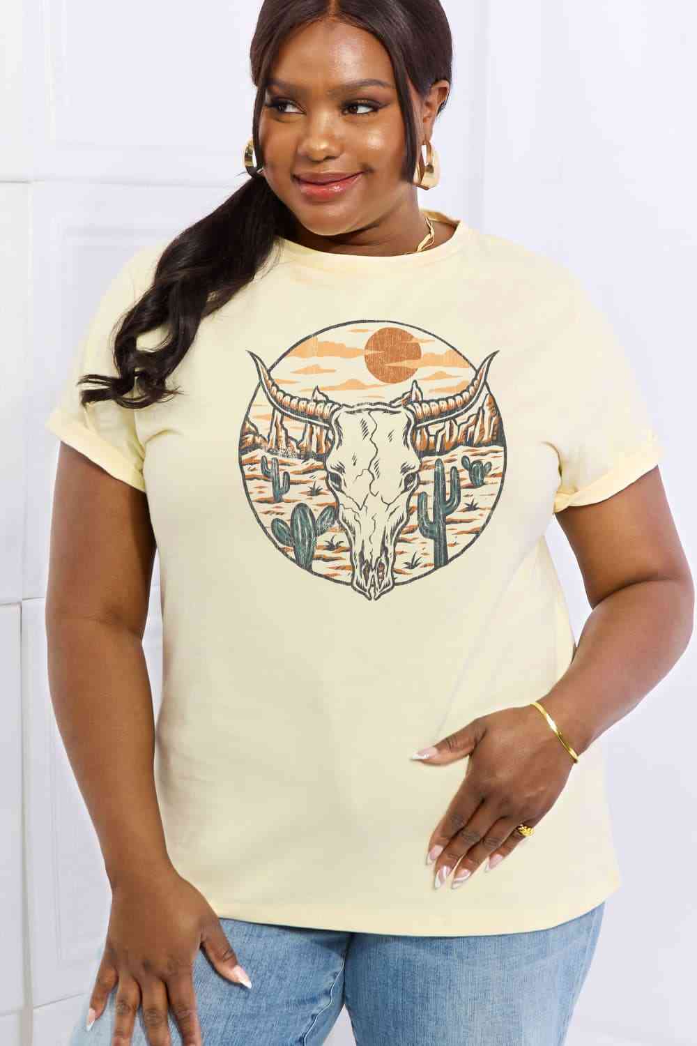 Simply Love Full Size Bull Cactus Graphic Cotton Tee