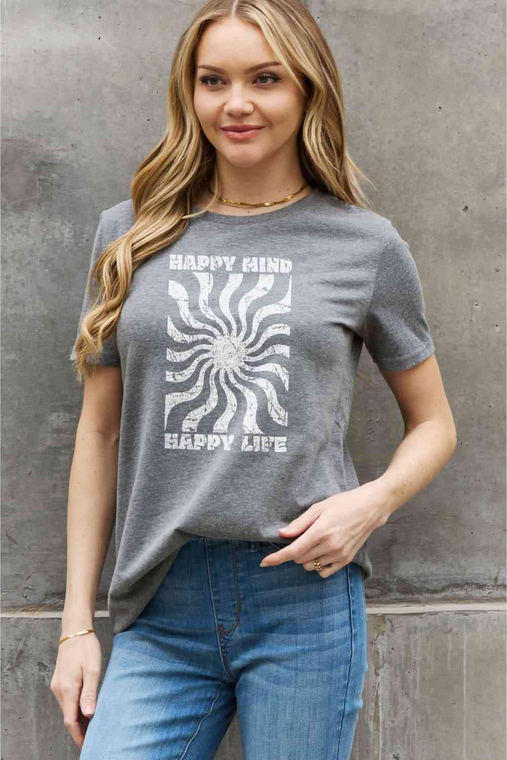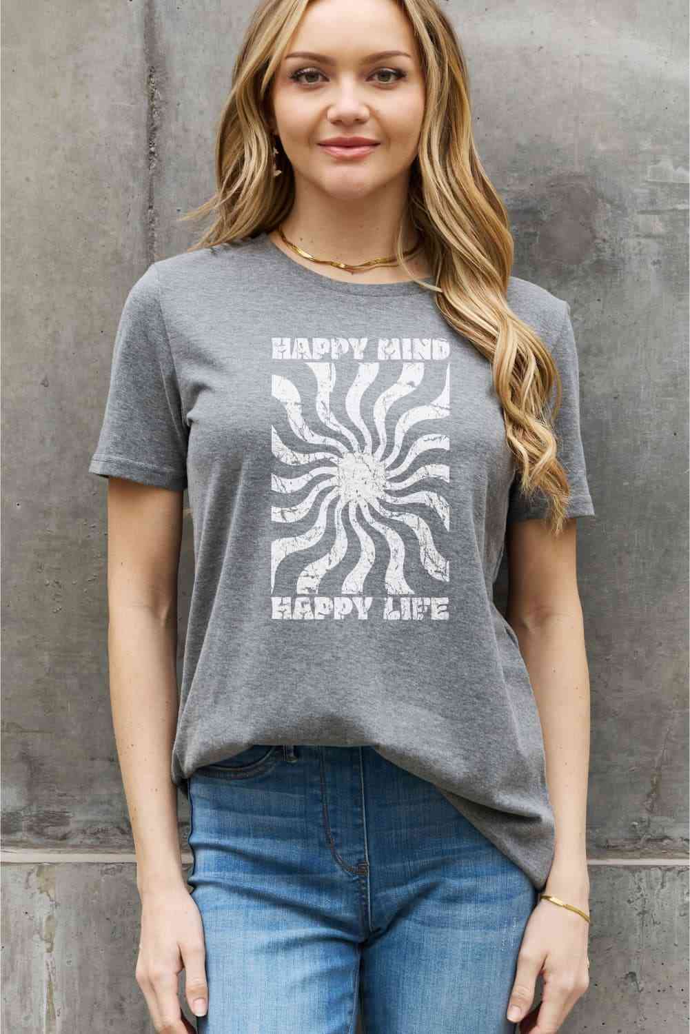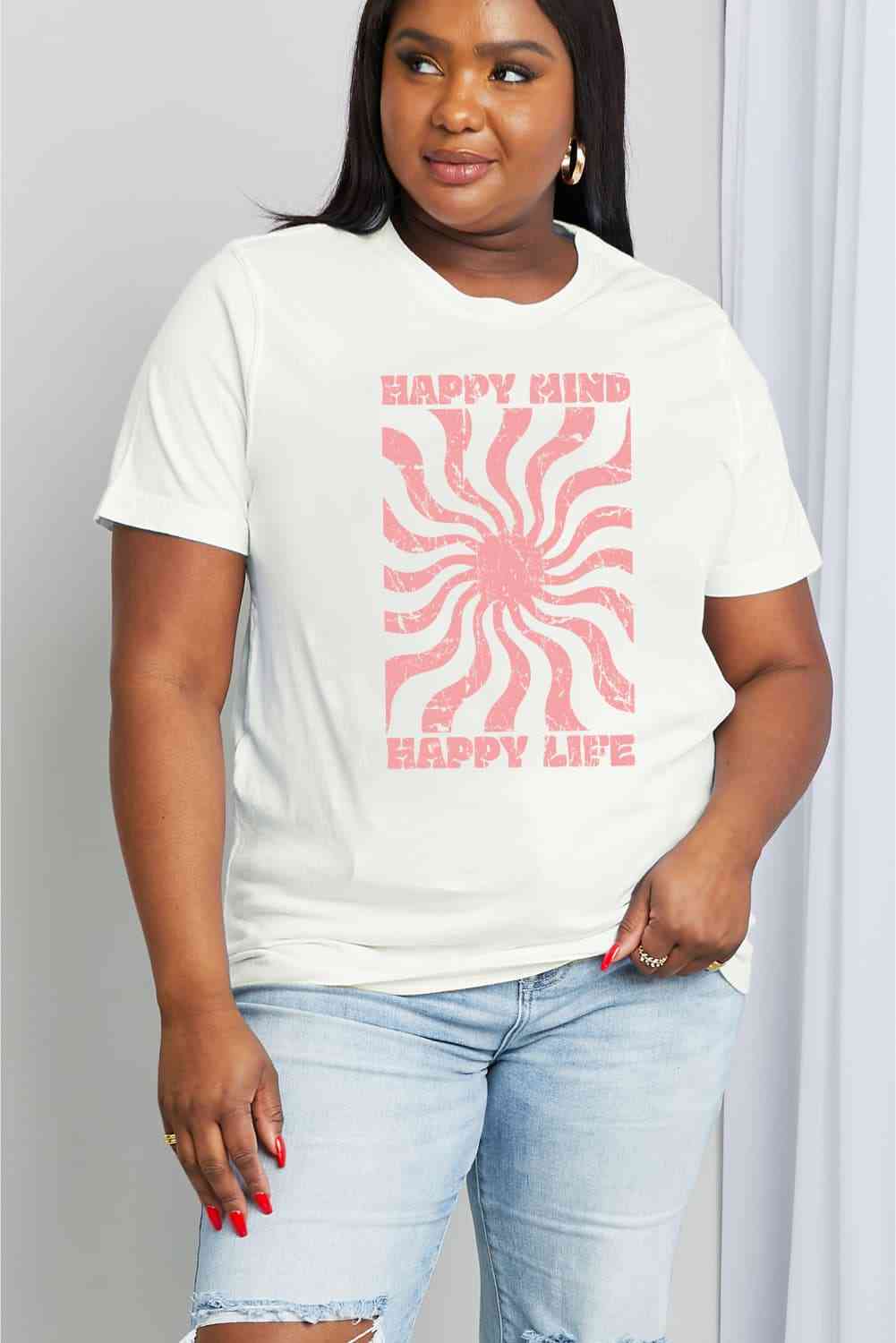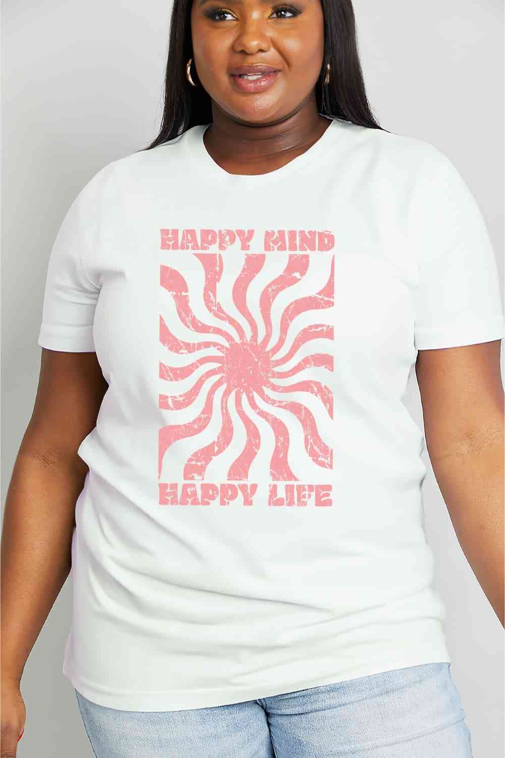 Simply Love Full Size HAPPY MIND HAPPY LIFE Graphic Cotton Tee