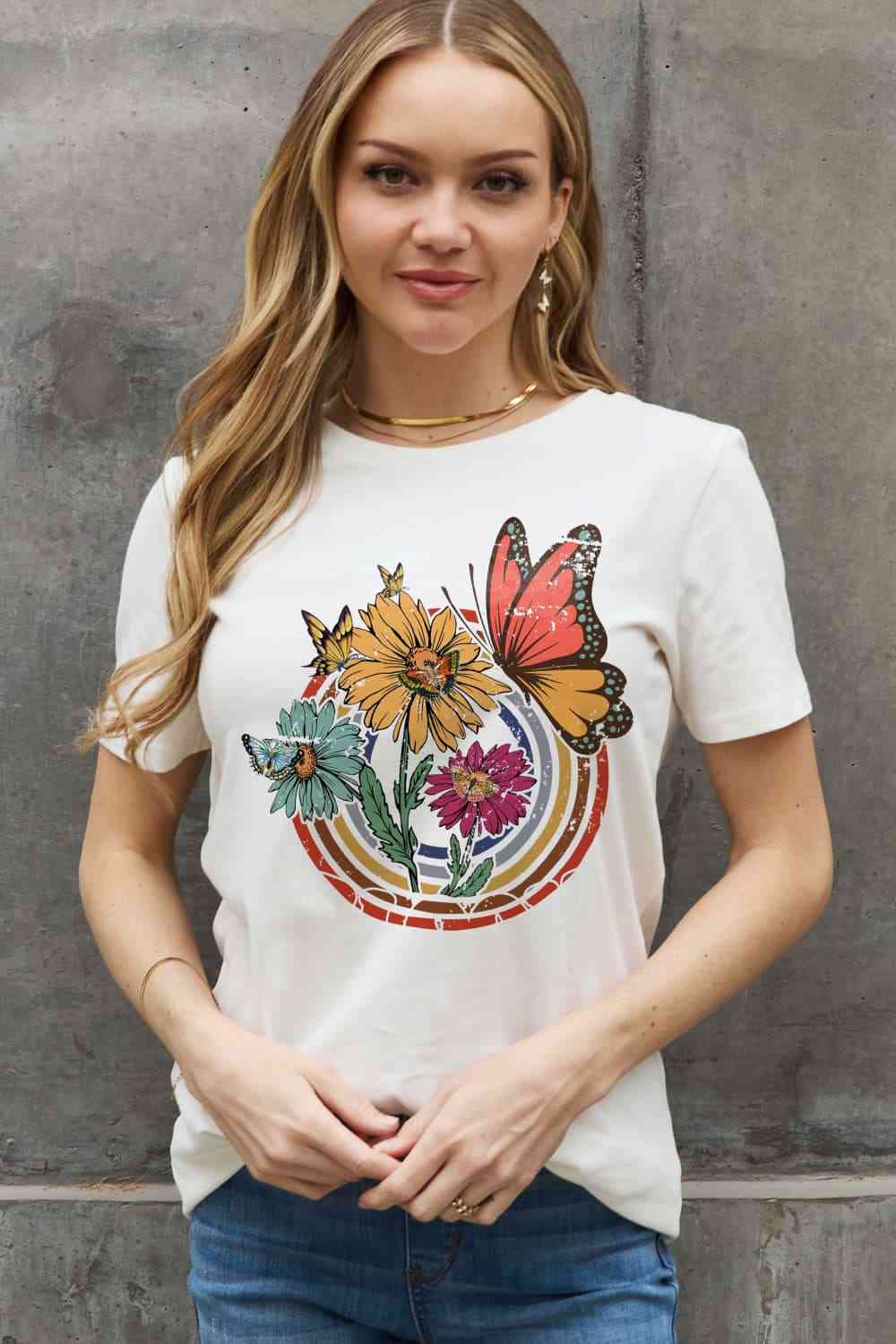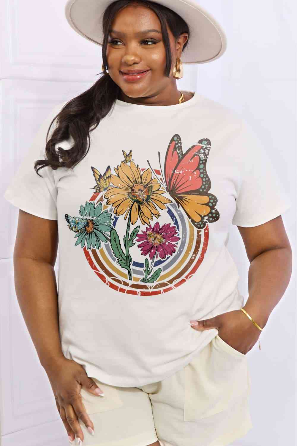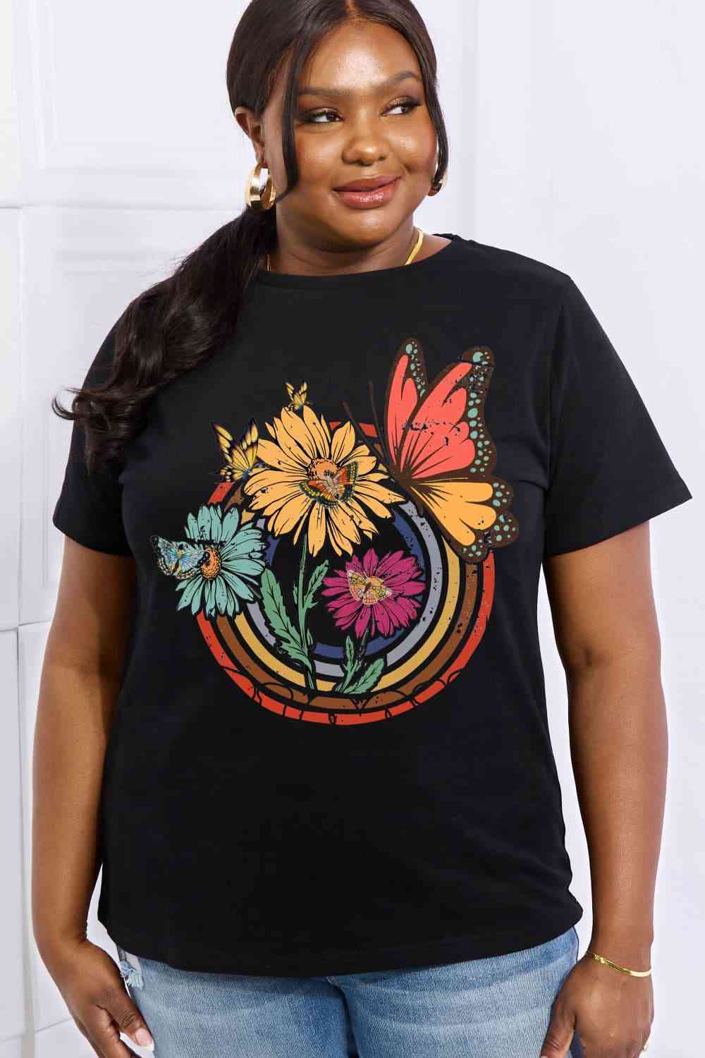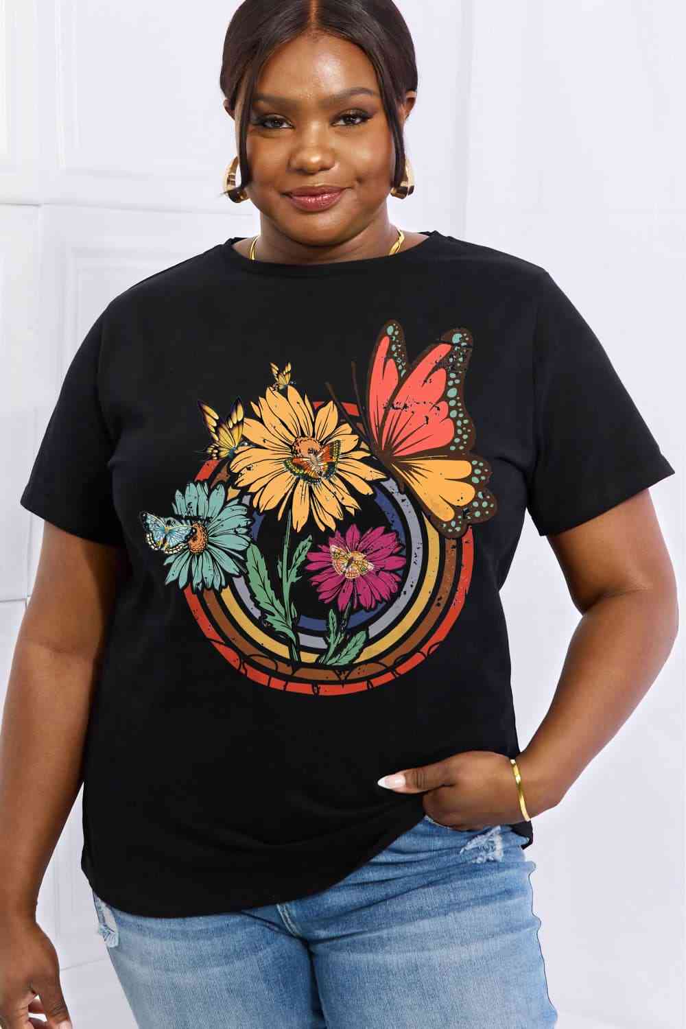 Simply Love Simply Love Full Size Flower & Butterfly Graphic Cotton Tee