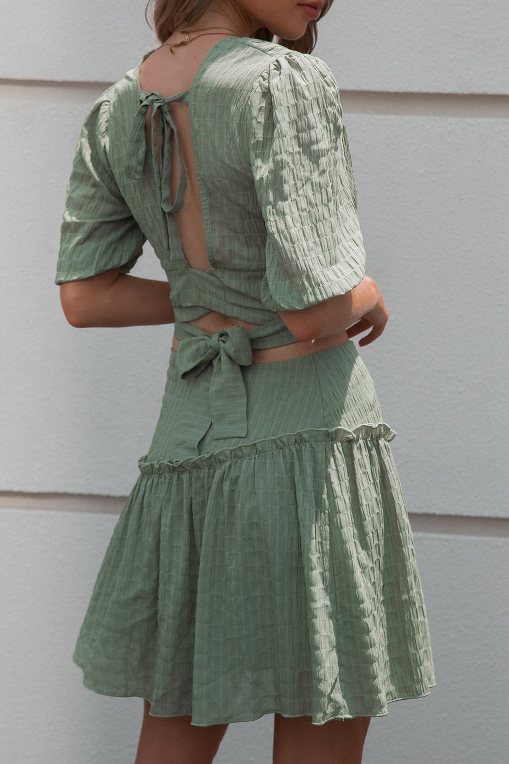 Surplice Neck Tie Back Top and Frill Trim Skirt Set